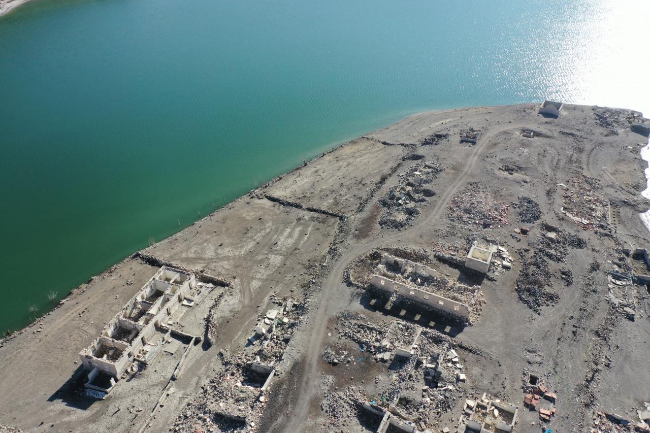 Su seviyesinin düşmesiyle eski köye ait yapıların kalıntıları, cami ve kilisenin görünür hale gelmesi ziyaretçilerin de ilgisini çekiyor. Kars-Erzurum kara yolu üzerinde bulunan köyde görünür hale gelen yapılar dronla havadan görüntülendi.
